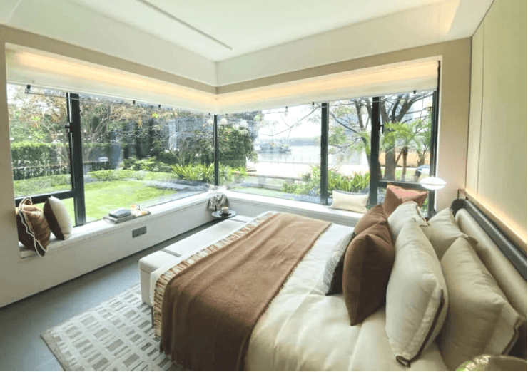 通过巨幕阳台等设计,项目将壮阔江景无缝接入生活日常——清晨,江面波光为生活拉开序幕;傍晚,归家即成观景,落日与流水共长天一色。