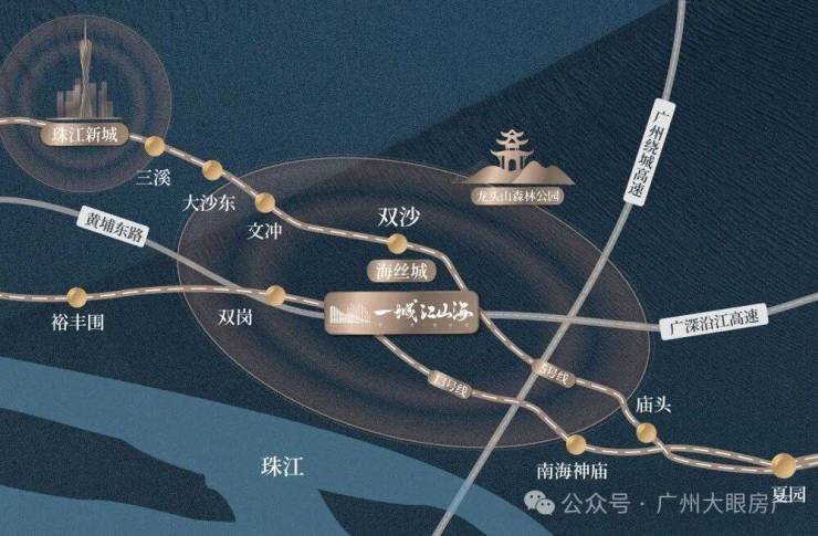 项目是临港经济区的重要功能节点,双沙旧改地块众多,首开区具体位置在5号线双沙地铁站B口附近,与地铁5号线双沙站的直线距离仅约50米,与地铁13号线双岗站直线距离也不到500米,双地铁站护航,交通条件优越,从项目出发,2站到鱼珠CBD,5站金融城,6站琶洲东区,10站直达珠江新城,囊括广州最重要的几个CBD。