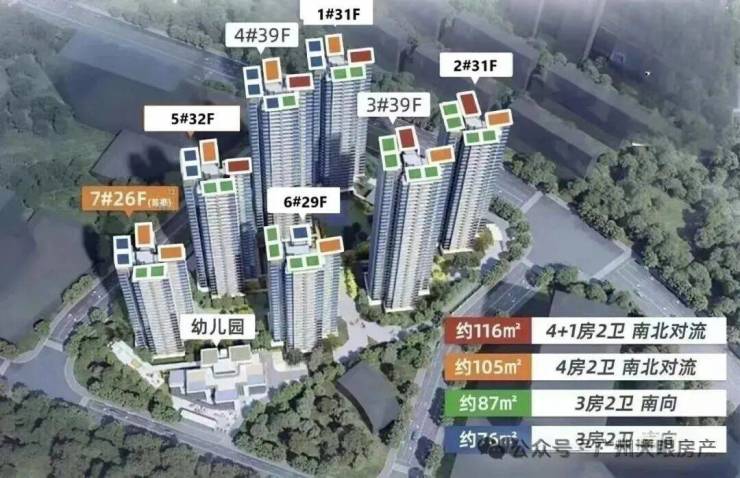 阅山组团全盘一共规划7栋楼,层高26-39层不等,总体货量大约1300+套