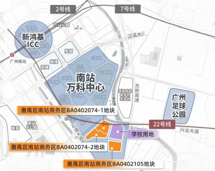 2024年12月17日,万科以底价28.8亿拿下广州南站商务区三宗宅地,总面积约23万㎡,折合楼面价约1.1-1.3万/㎡。