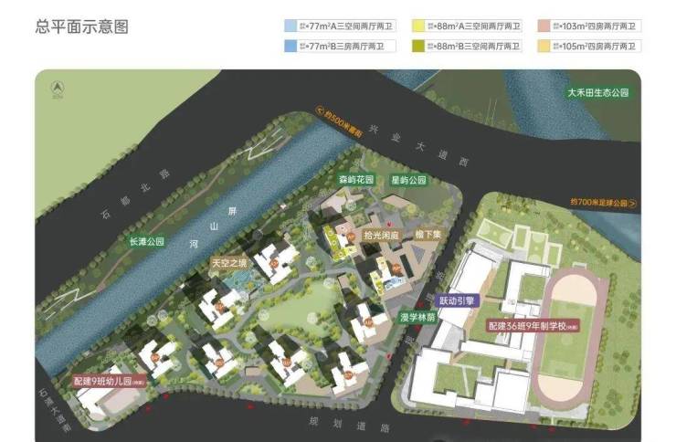 项目规划有9班公办幼儿园,并引入36班九年制中小学校,出家门即到校门,助力精英未来每一步。