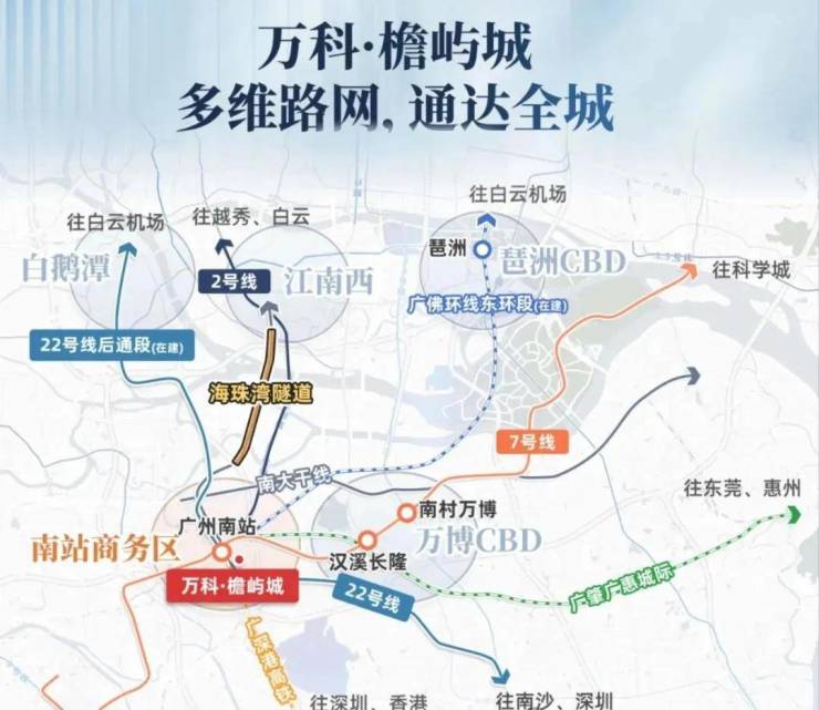 广佛环线能15min琶洲CBD,18min金融城CBD,30min白云机场(4站台:广州南站、石壁、谢村、番禺站)