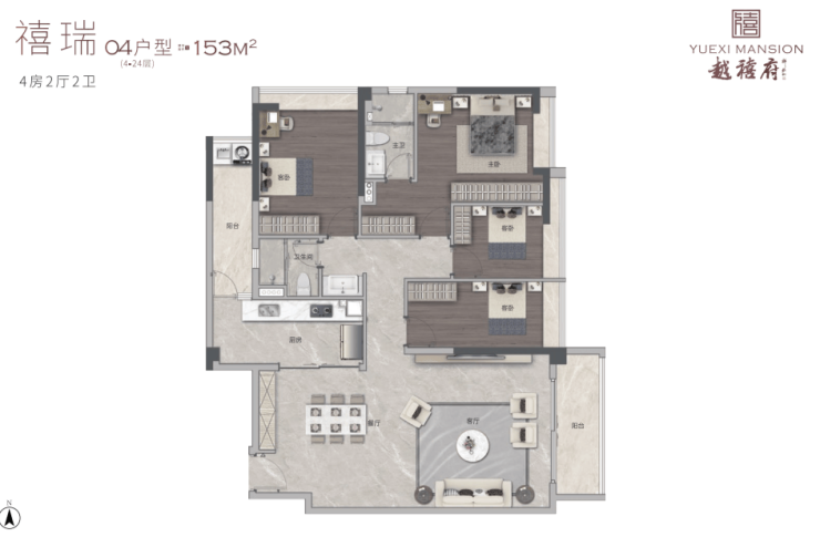 建面约153㎡四房是改善之选,动静分区,若是一家四口,可以考虑将其中两个次卧合并,扩展为大房间。
