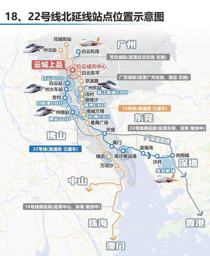 而云城上品所在的白云城市中心站,正是这两条高速地铁交汇所在,作为跨市域地铁线,通达广州,更可畅行大湾区。