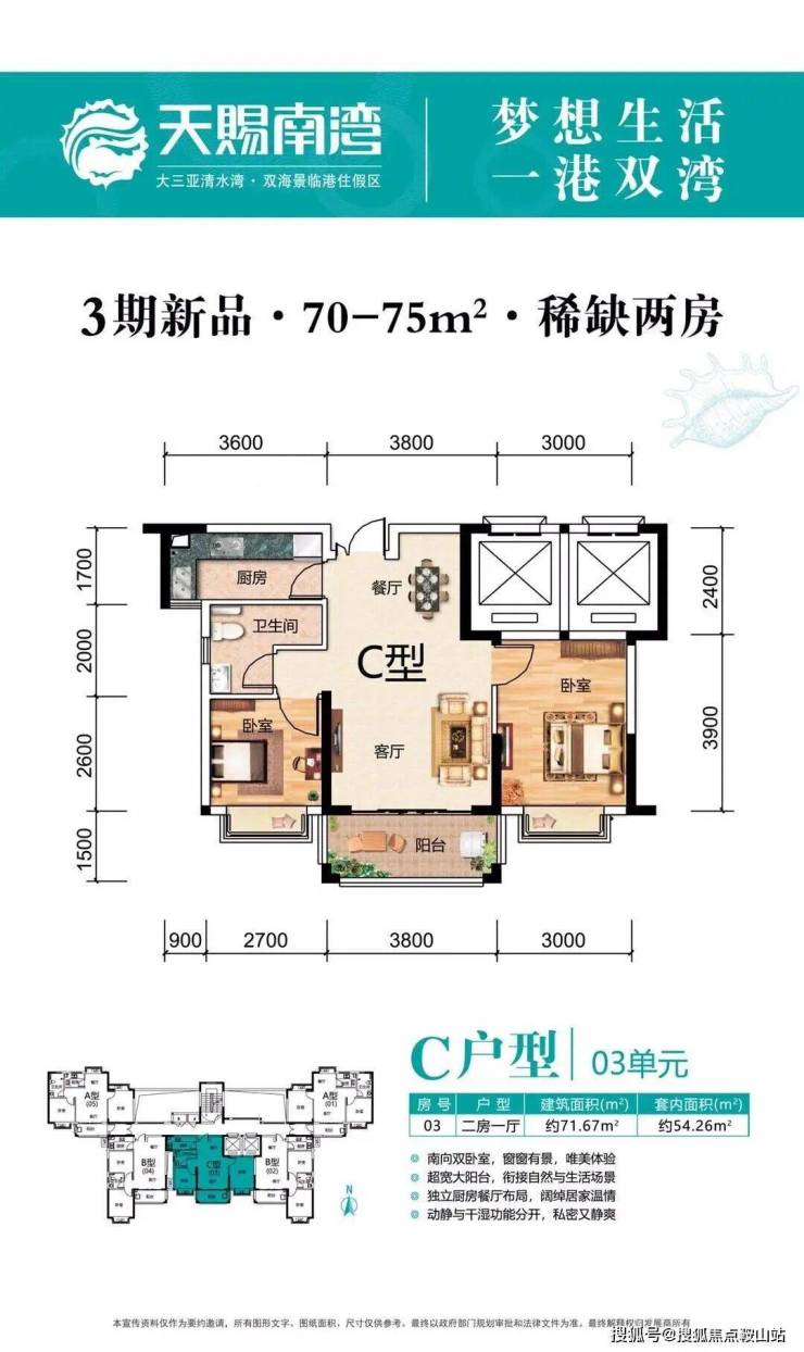 三期主力户型:约70-75㎡(两房)
