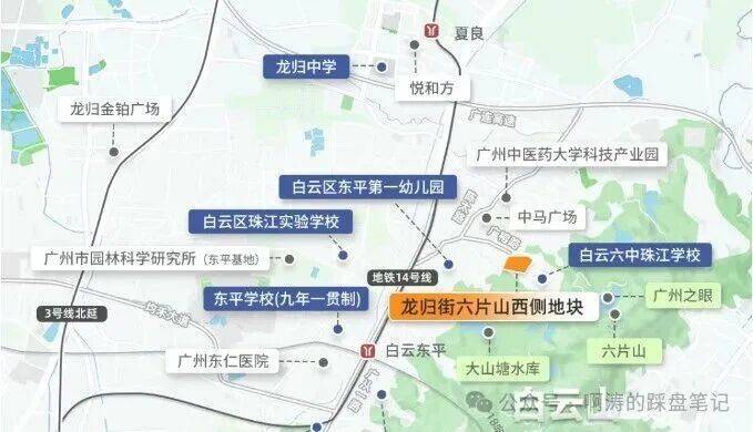 东侧为白云六中珠江学校(高中),南侧为广东实验中学,还有龙归中学、东平学校、永兴小学。其中东平学校(小学),与省实关系很好,未来有望纳入省实教育集团统一管理。