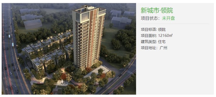 在合景名铸附近,还有一处吹风价为15万的豪宅——新城市领院。广州 "云山珠水" 旁的豪宅,景观好、低密度,都是必不可少的属性,新城市领院也是一样。