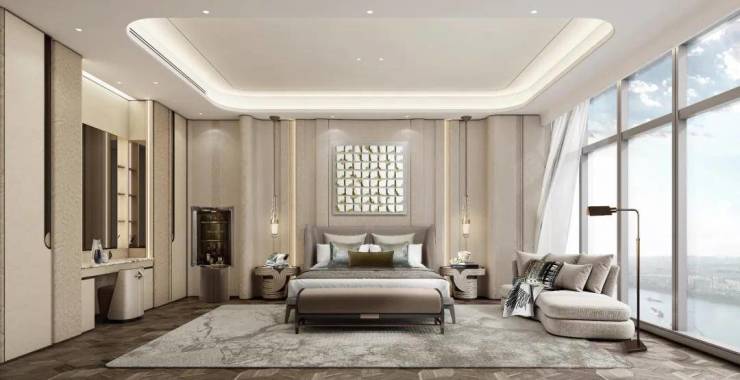 一线无界江景纳藏,下楼即享约10万㎡江畔园林,升阶广阔意境,为时代赢家打造上乘滨江商务战略级社交空间。