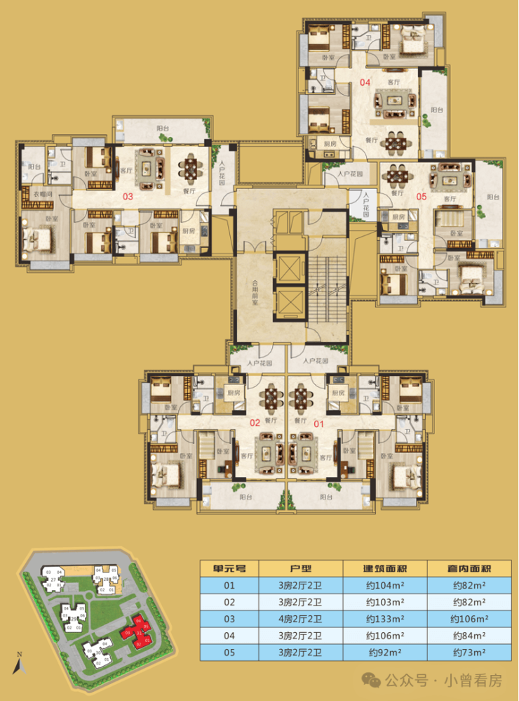 E户型 建面约106m² 3房2厅2卫