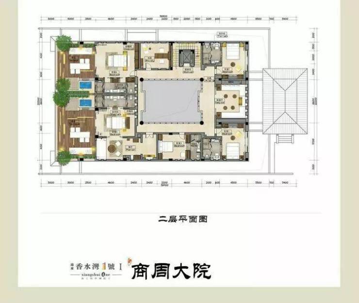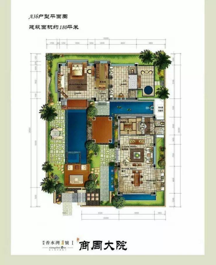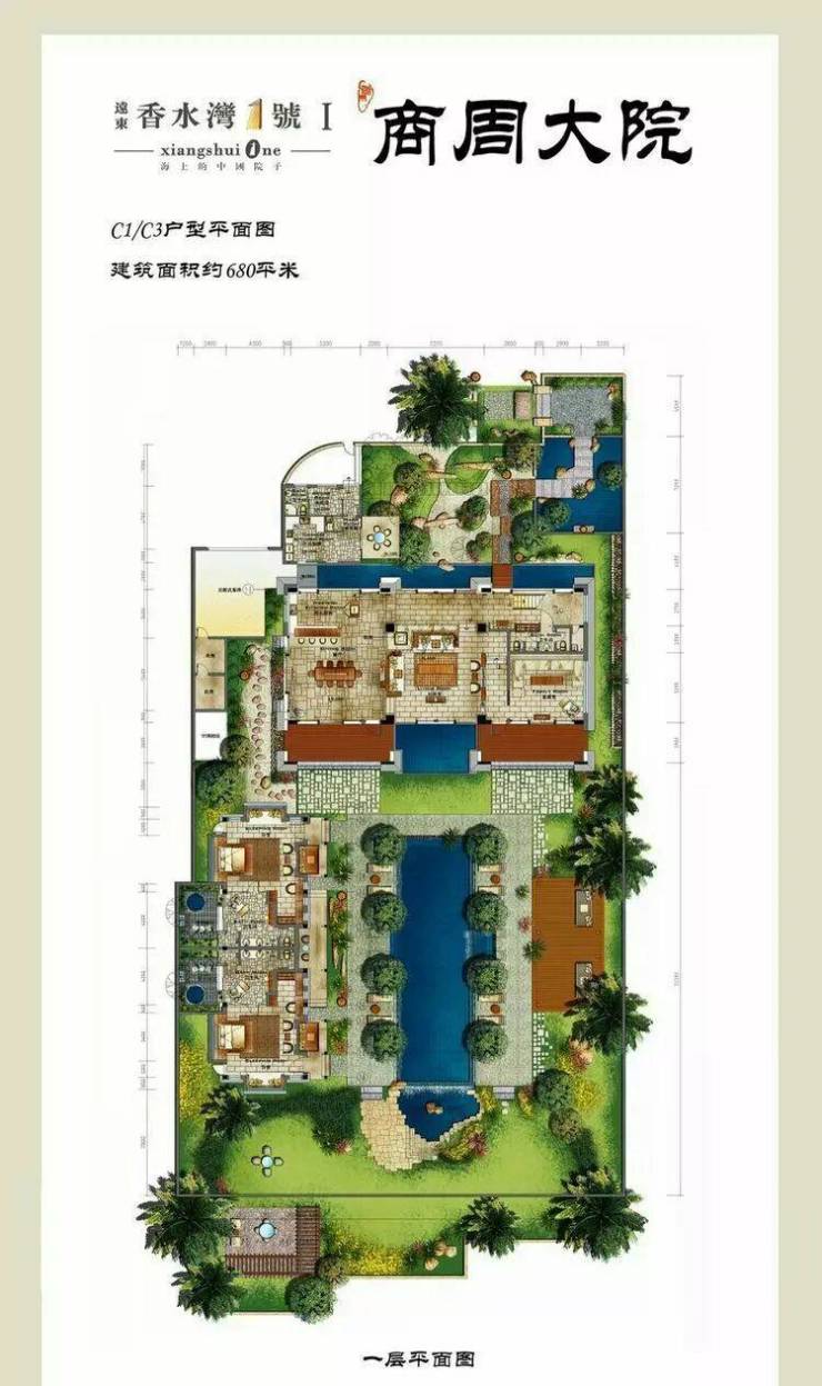 香水湾1号潜心钻研中国最古老、最本源的商周宫廷建筑形制,从中发掘名族建筑文化与高端建筑形态的渊源,与当代中国时代精神结合,用高度概括和凝练建筑语言 最具商周特色的坡式大屋顶、气质古朴的茅草或平檐板屋面、考究的人字形坡度勾勒出洗练天际线、深远的屋檐出挑延伸出的恢弘气度、浑厚结实的金砂墙体、大尺度的厚重基座 深刻传达内敛、含蓄、质朴、稳重的中国文化精髓,成就当代中国原创建筑中堪称最高形态的商周原著。