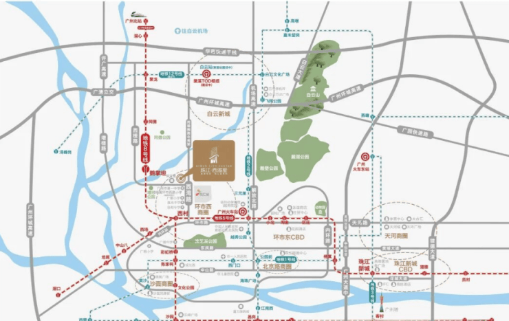 自驾同样高效:家门口即是西湾路,快速接驳内环路、东风路、环市西路等城市主干道。经环市路,约10分钟可达北京路商圈,25分钟抵达珠江新城,半小时通达广州主要商务与生活节点。