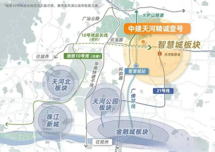 项目距离地铁21号线天河智慧城站2公里,距离10/30号线规划中的交汇站华观站约600米。