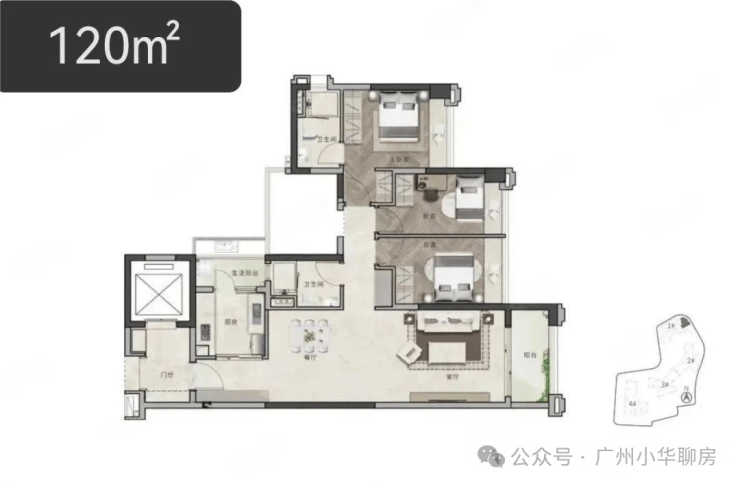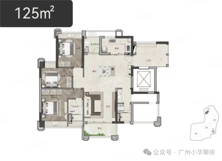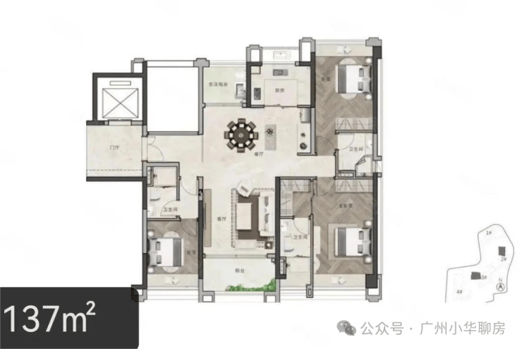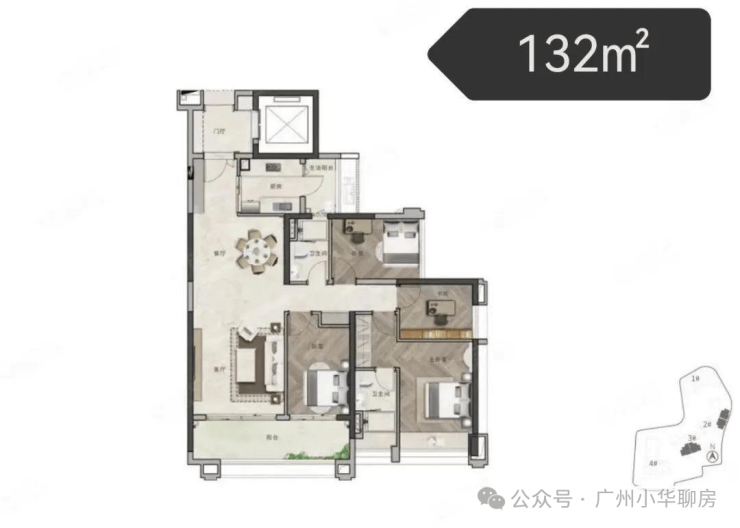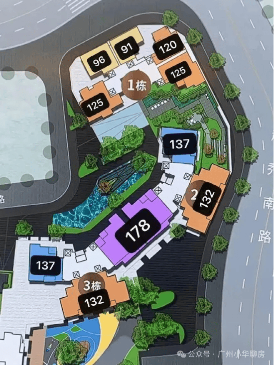3#的位置比较往里面,比1和2栋都要好,一共有三个户型,以大面积为主,分别是132平四房,137平三房和178平四房