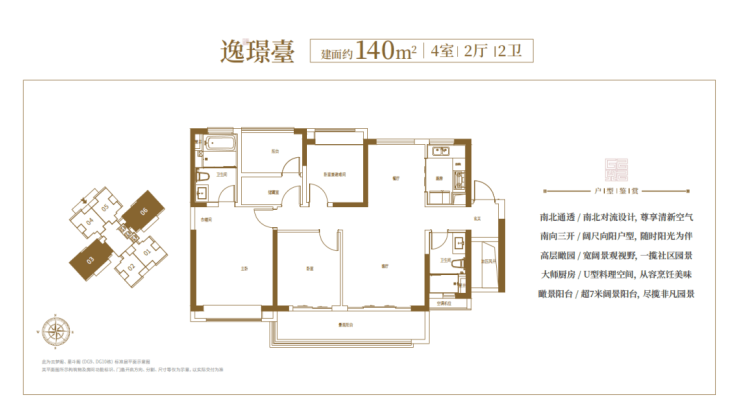 逸璟臺,建筑面积约140㎡(4室 2厅 2卫)