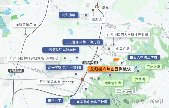 东侧为白云六中珠江学校(高中),南侧为广东实验中学,还有龙归中学、东平学校、永兴小学。其中东平学校(小学),与省实关系很好,未来有望纳入省实教育集团统一管理。地块西边规划一所36班九年制学校,远期还可以扩建为45班制。