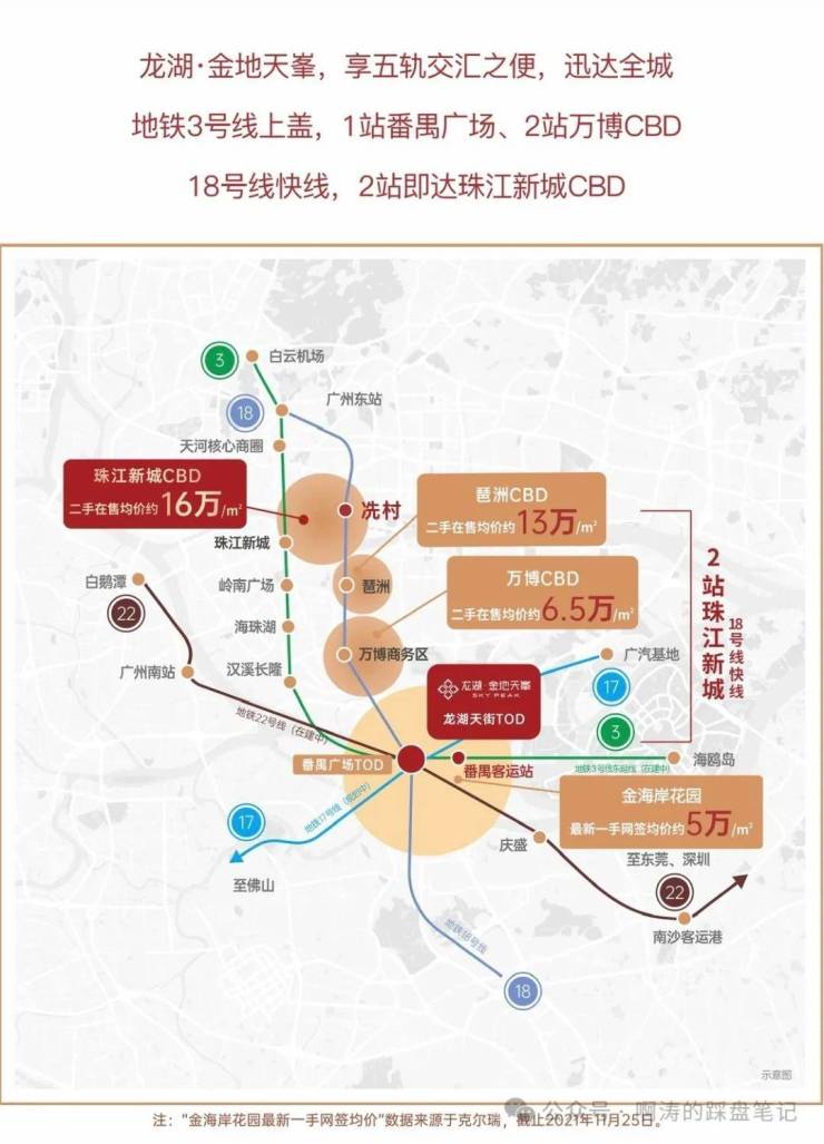 作为广州黄金中轴地理位置,沿着全国最快的地铁18号线打造,横跨珠江新城、琶洲、万博、番禺中芯,再到南沙。