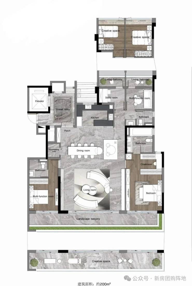 社区配套:全盘规划 20 栋住宅,每栋洋房架空层均有功能设计,满足业主多样化生活需求。
