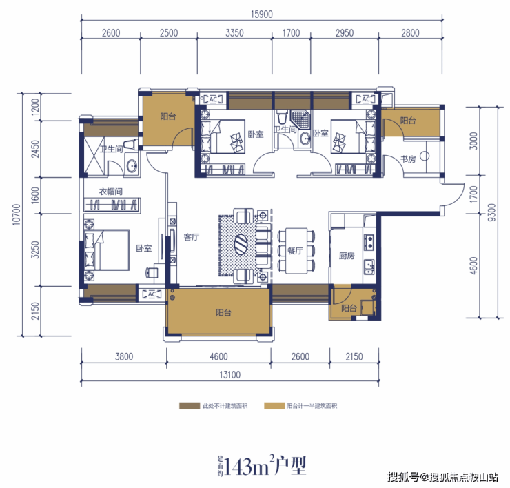 143㎡ 五房两卫,南向看花园全景,楼王位置
