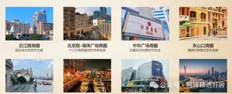 3、商业配套:项目约1公里内,有万国奥特莱斯、富基广场、海印广场等,周末也可以直接自驾上江湾桥到对岸,什么东山口商圈、北京路商圈等,往返交通都很方便。