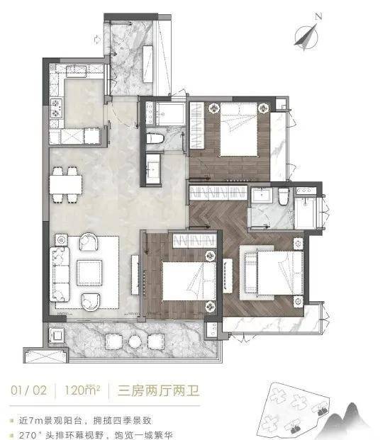 【A5-01/02户型】 建筑面积约120㎡三房两厅两卫