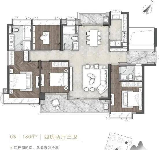 【A1-03户型】建筑面积约180㎡四房两厅三卫