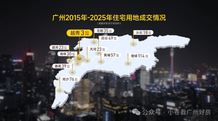 越秀近10年仅有3块住宅用地出让,上一宗距今超过5年,与断供十年的珠江新城并肩。不仅一地难求,新盘也同样难有,项目所在地段内,上一个项目,还要追溯到2014年杨箕村旧改入市。