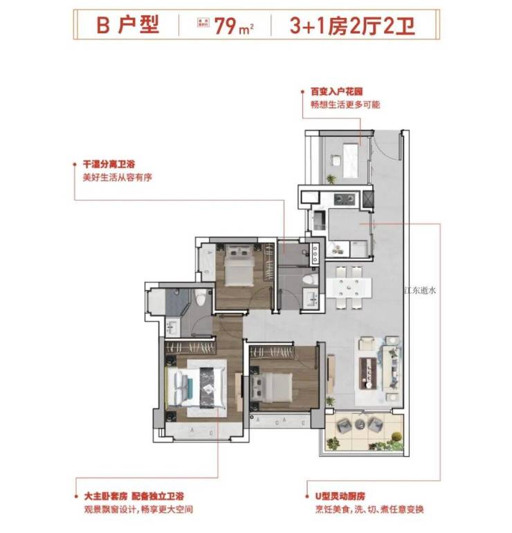 2. 79㎡,三房二卫户型