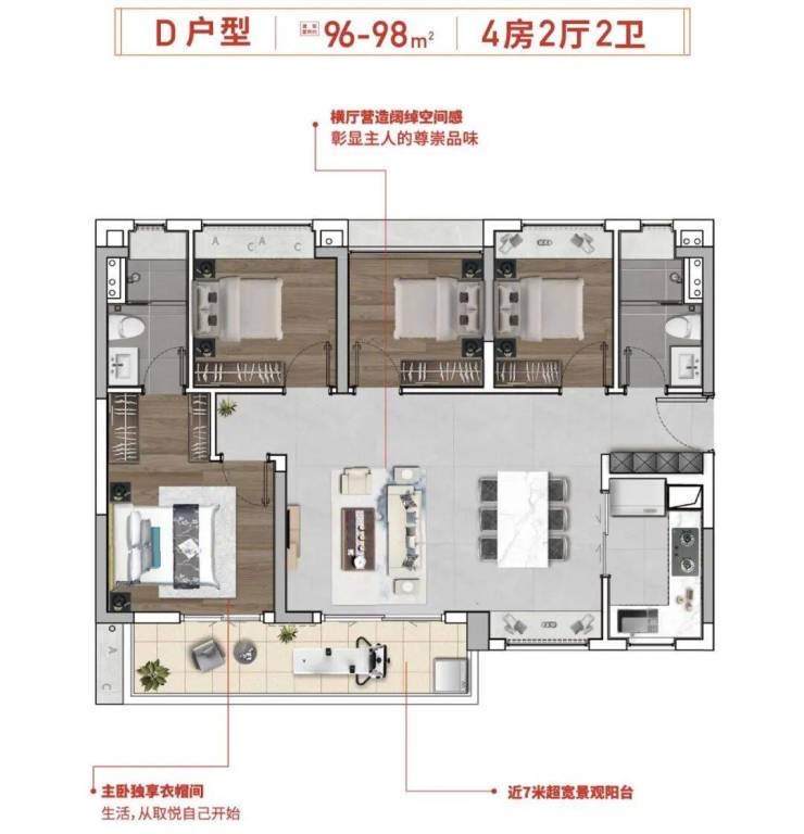 4. 98㎡,四房二卫户型