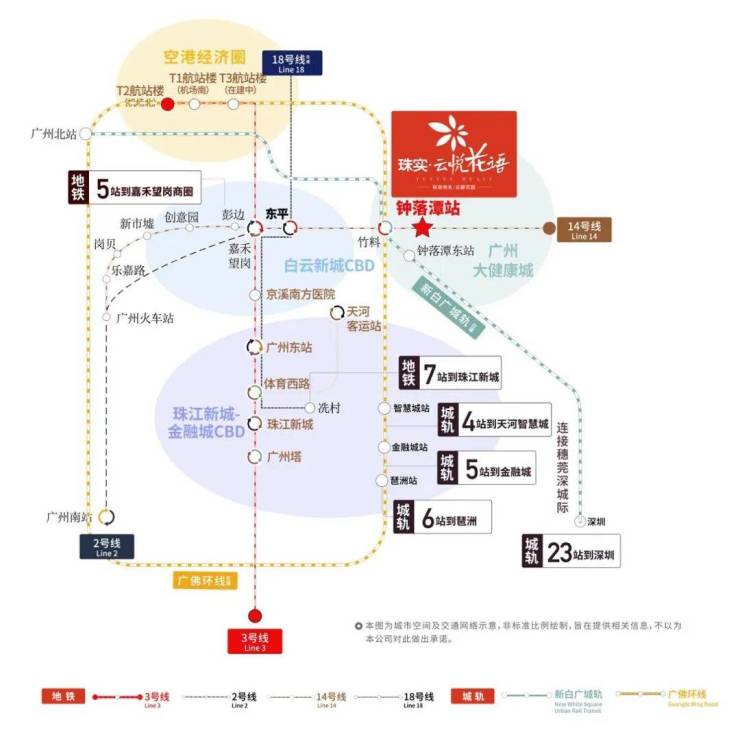 1.项目位于地铁14号线钟落潭站旁,5站到嘉禾望岗,换乘2、3号线可直通白云新城和畅达广州全城