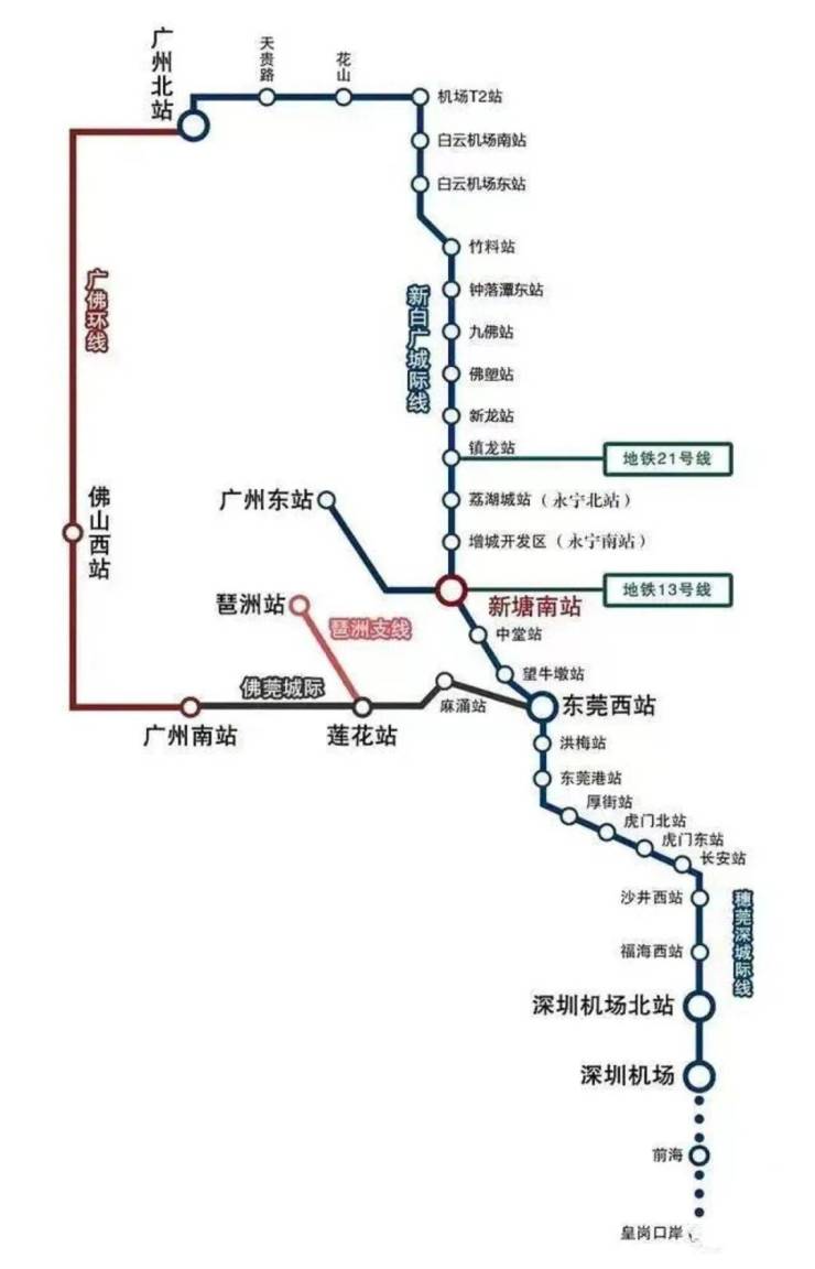 5.新白广城轨(在建中)1站白云机场,南向通达东莞和深圳