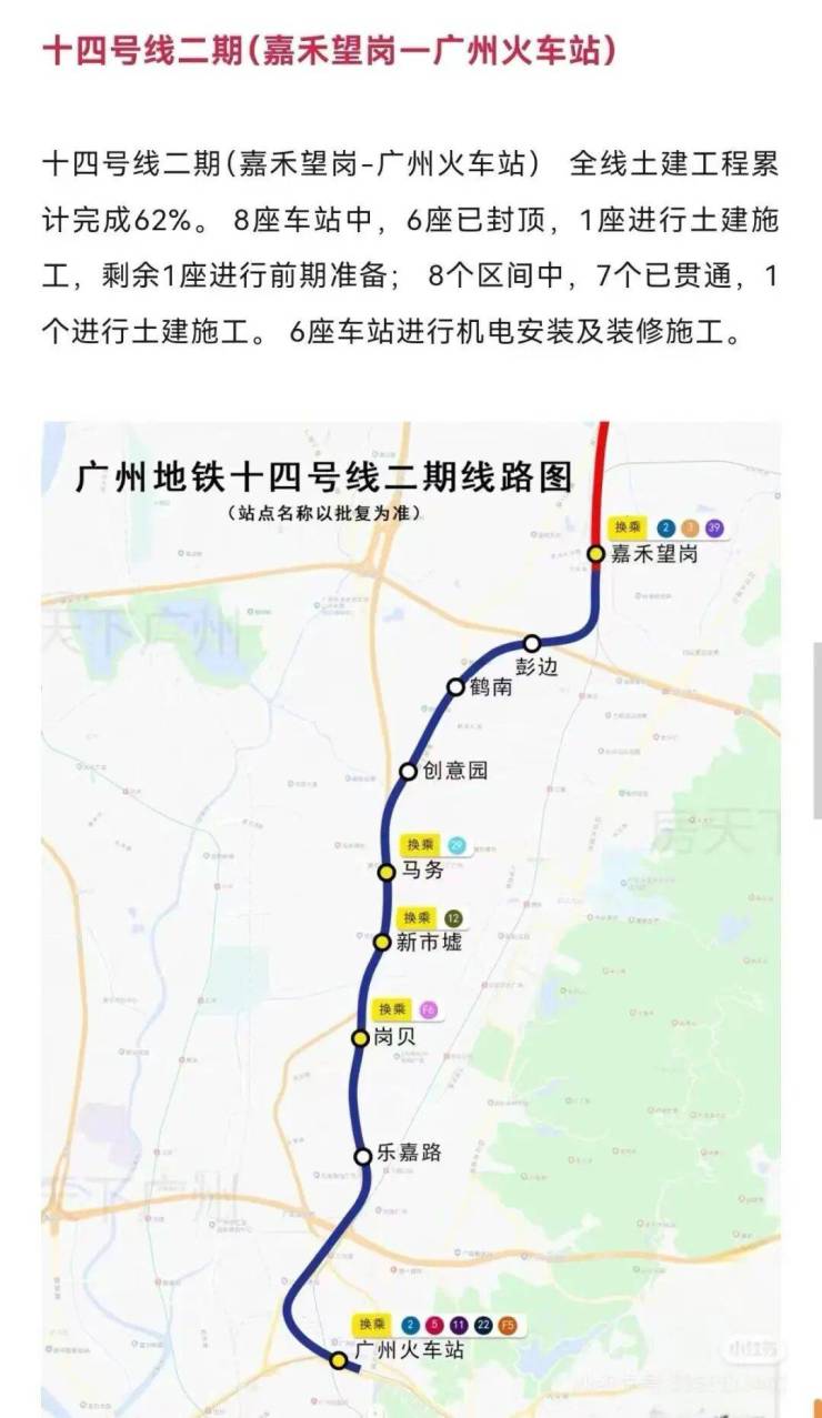 2.14号线二期(在建中)不换乘直达广州火车站
