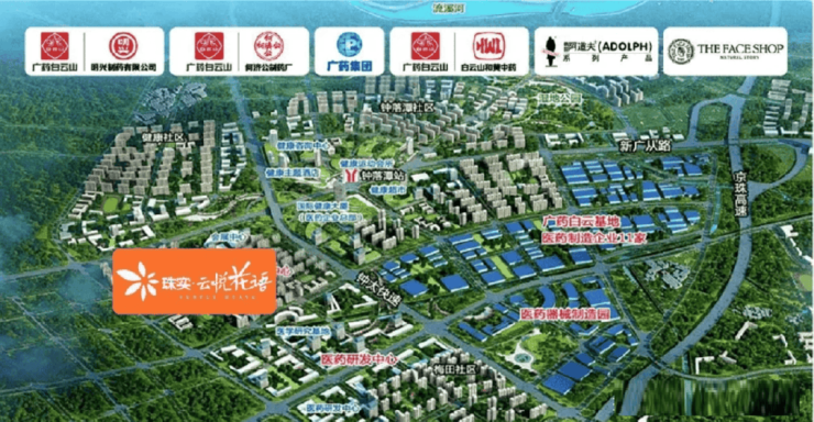 广州大健康产业基地:投资200亿,规模约等于22个广钢新城,已有何济公、明兴制、广药集团、和黄中药等29家知名健康产业企业入驻。健康城整体包含医药研制、职业教育、健康服务和健康养生四大功能片区。