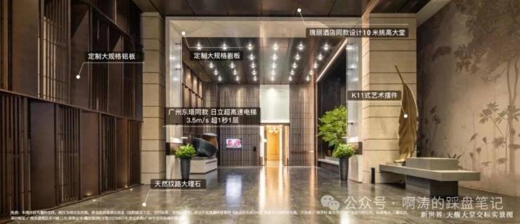 约10米挑高艺术入户大堂,与瑰丽酒店同源设计。东塔同品牌高速电梯,超1秒1层,几乎是全广州最快的归家客梯。