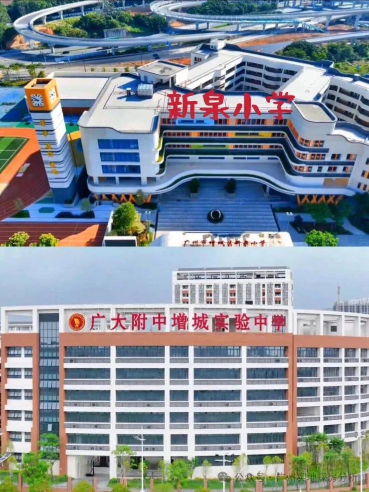 项目没有配建学校,只能去读周边的学校,目前对口的学区划分是新泉小学+瑶田小学,以及广大附中增城实验学校。