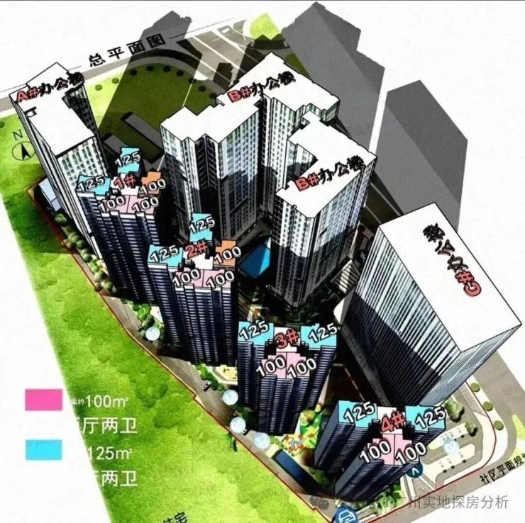 业态分布:1栋写字楼+2栋商办公寓+4栋住宅+建面约2000㎡商业,写字楼已经被星耀自家股东绿天然给定了。