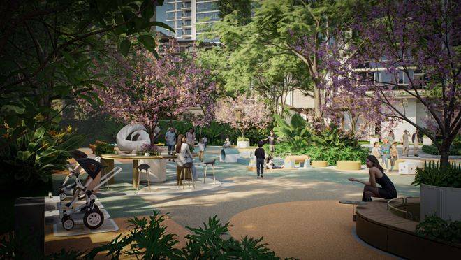 在园林打造上,摒弃对传统岭南园林繁复符号的照搬,萃取 “小中见大、曲径通幽” 的精髓,以 “云起樾鸣,青绿栖心” 为理念,将白云山的自然元素解构重组成 “四幕九境”。从 “云扉入境” 的归家礼序,到 “麓鸣探幽” 的深邃探索,再到 “云屿浮光” 的豁然开朗,最后 “画境栖居” 回归生活本位,为业主营造出充满诗意与自然的居住环境。园林内还设有童花乐园、有氧健身区、四大主题泛会所等,满足全龄段业主的生活需求。