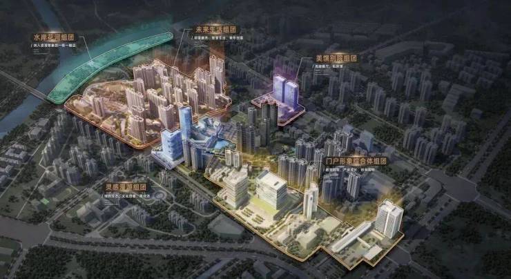 根据方案,项目将以“一心一轴一门户”为核心,打造水岸花河、灵感漫游、美馔别院与门户形象综合体等多元组团。