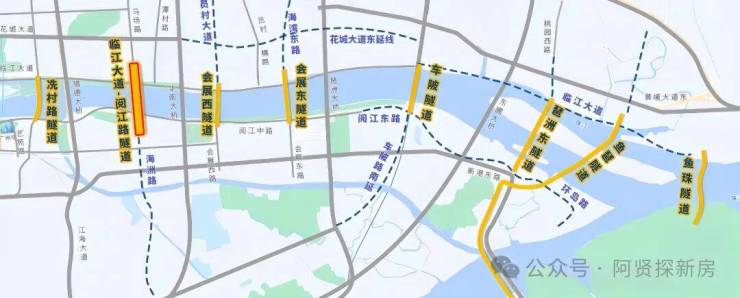 珠城、金融城-琶洲(南北向):政府规划8条过江隧道,目前已建成车陂南隧道,项目东边的会展西隧道预计明年2026年通车