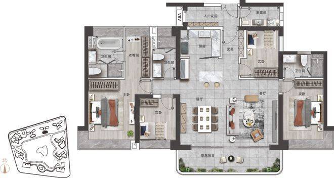 建面约195㎡户型配置:
