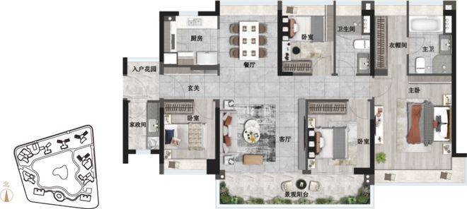 .大面积入户花园,兼备储物与休闲等功能,拓展个性化空间