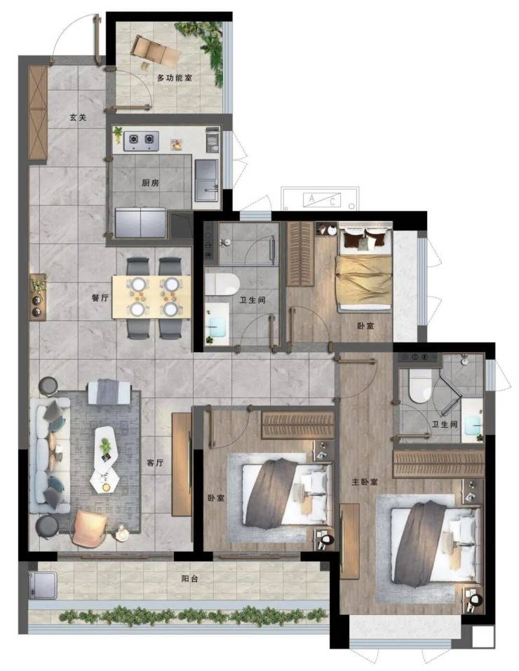 B户型 建面约102㎡ 3房2厅2卫