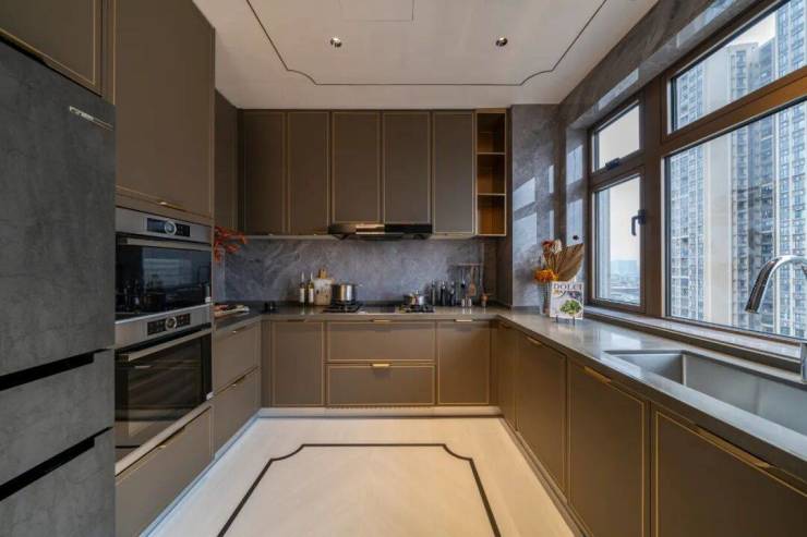 例如,在交标上,从进门的玄关、到客厅的电视背景墙,都采用成本不菲的高端奢石;在厨电品牌上,选用百年德系品牌博世。