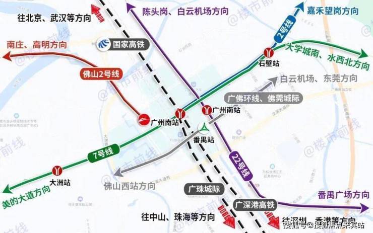 5 高铁+3 城轨无缝链接大湾区及国内9省,高铁可实现8小时辐射全国,3小时华南商圈,48 分钟直通香港九龙;城轨可实现 1 小时辐射大珠三角,半小时广佛同城,58 分钟直通澳门;广州南站4地铁交汇+4快速,15分钟直达南村万博CBD,30分钟直达珠江新城CBD。