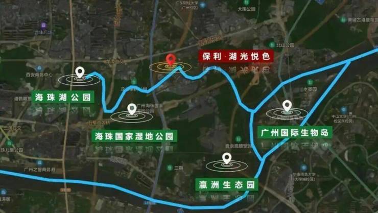 除湿地公园外,项目3公里范围内还有海珠湖公园、瀛洲生态园、广州国际生物岛,四个公园犹如四扇“翡翠屏风”串联一体,十里云水,世界唯一。