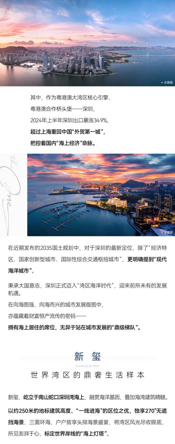 与南海玫瑰三期和半岛城邦为邻。深圳湾新玺名苑分为两期开发,主要由三栋高层建筑组成,其中:一期为2栋38层的商务公寓及公寓+办公综合楼,建筑高度约156.5米+171.1米;二期为1栋57层的办公及酒店综合楼,建筑高度约250米。华侨城集团集36年大成打造的超一线国际标杆综合体,总投资超200亿,它不仅是华侨城有史以来打造的最顶级公寓产品,同时也是湾区绝版珍藏的人居物业