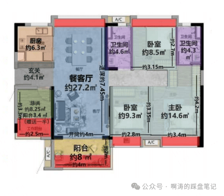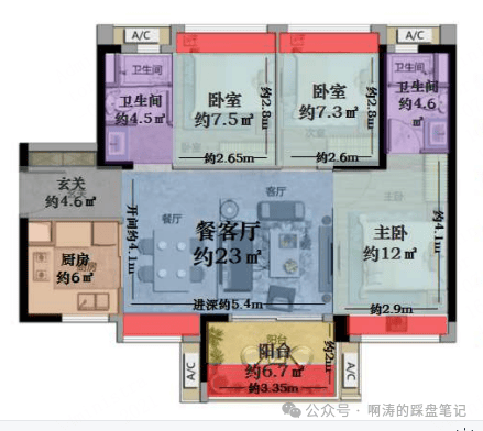 3、6栋95m² 2+1房2厅2卫