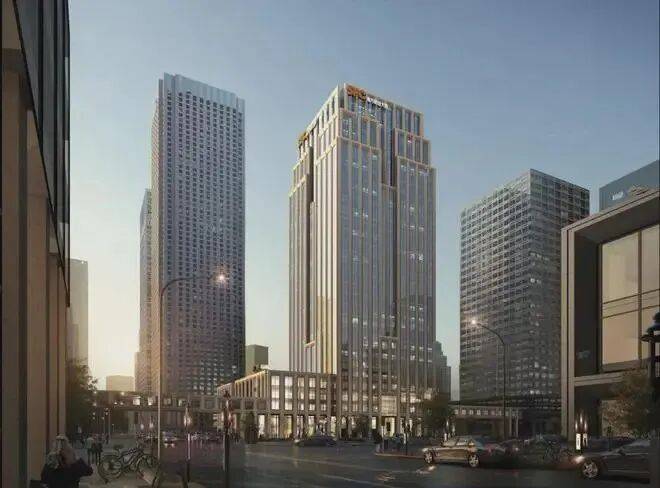 本项目设计引入“古典型制”的理念,以形体对称为原则,以竖向石材线条为语言,以塔楼层层收分为手法,诠释金融城整体风貌特色。