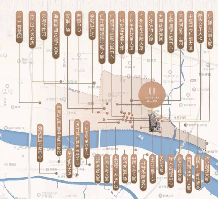首先坐拥广州金融城核心地段,位于天河金融城临江大道,直线距离仅珠江约130米(来源:高德地图),坐拥一线江景。