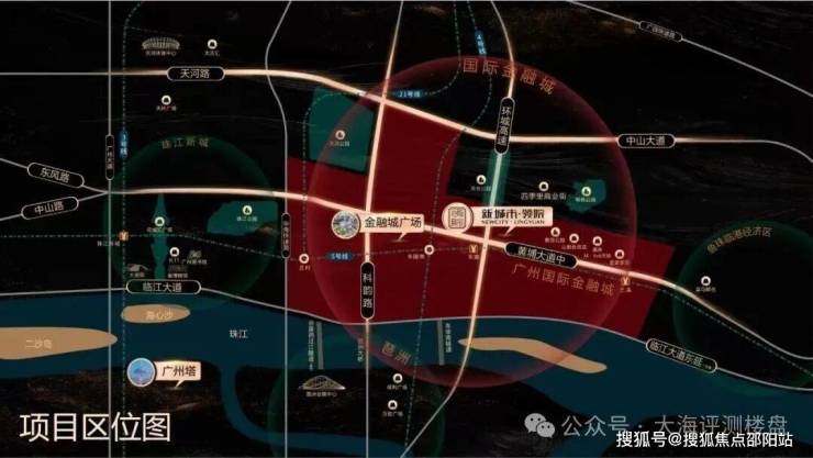 新城市领院位于黄埔大道的北侧,靠近鱼珠,南向望江,和金融城东区直线距离约300米左右,跟兰亭盛荟只有一路之隔。