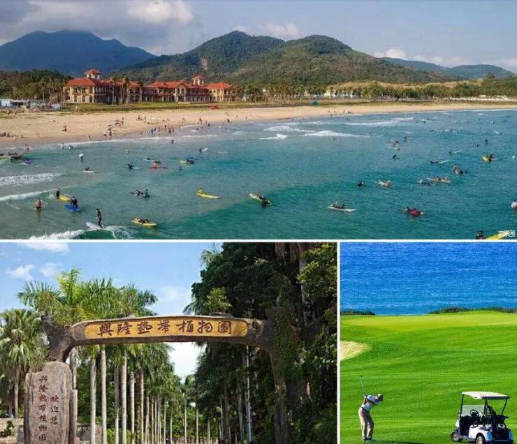 3个滨海雨林高尔夫:神州半岛滨海高尔夫、南燕湾滨海高尔夫、康乐园雨林高尔夫。